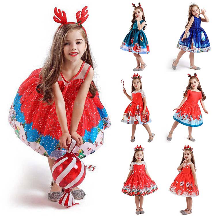 子供ドレス ワンピース 子ども クリスマス コスチューム コスプレ衣装 可愛い キッズ サンタクロース柄 7タイプ クリスマスプ レゼントサンタ 女の子 2点セット