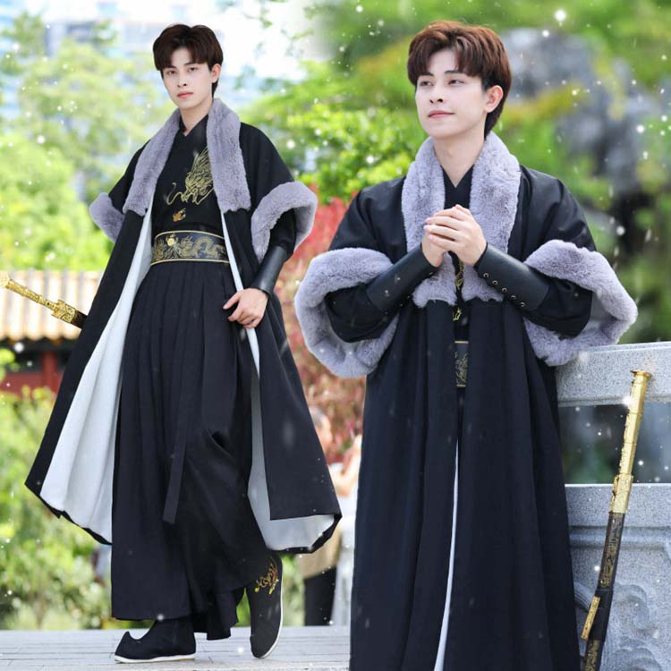 チャイナ服 メンズ 中華 コスプレ衣装 唐装 漢服 コスチューム チャイナ風 交差した襟 ハロウィン衣装 華流 長袖 トップス ロング丈 スカート 龍 刺繍 仮装 変装 エスニック 漢唐