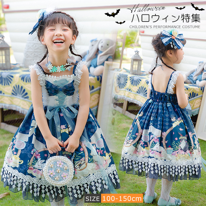 ハロウィン コスプレメイド服 子供用 ロリータ 子供ドレス 女の子 ドレス 仮装 大人 アリス風 アリス コスチューム パーティー レースの切替 リボン クリスマス