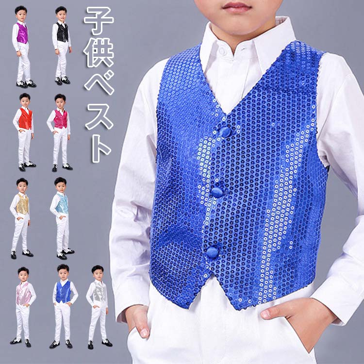 スパンコール ベスト キッズ ダンス衣装 社交ダンス コスチューム ステージ ヒップホップ スパンコール衣装 変装 仮装 子供服 男の子 女の子 演出服 発表会 スパンコールベスト