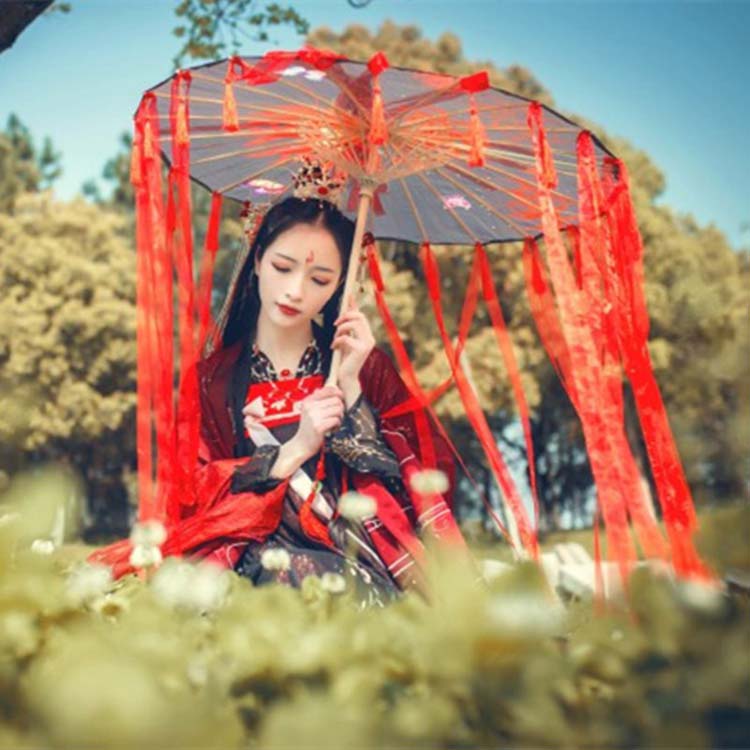 中国古代コスプレ道具 古典傘 チャイナ風 唐傘 舞傘 撮影写真道具傘 中国伝統唐傘 団体演出道具 中国風 花柄 鶴柄 タッセル チュールリボン付 デザイン豊富 漢服 日傘 舞台道具