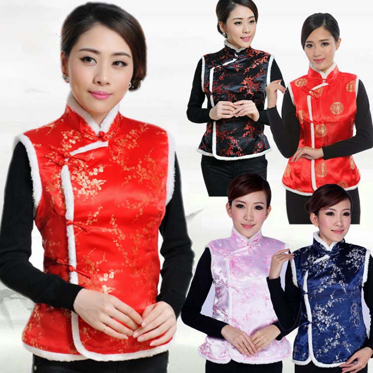 中華風チャイナドレス 秋冬用カジュアルパーカ 華流舞台ステージ衣装5色 民国風唐装 漢服ベスト 中華コスプレ写真撮影演出服女性用綿入りベスト