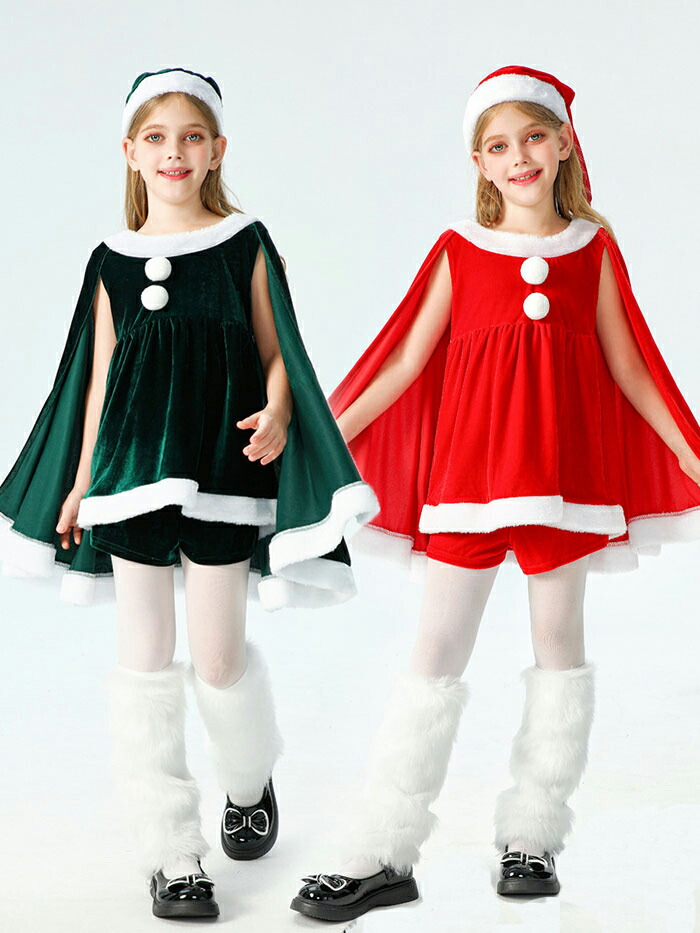 サンタ コスチューム キッズ 女の子 可愛い ポンチョ ワンピース サンタクロース 衣装 子供 子ども ワンピース サンタ服 コスプレ クリスマス サンタコス 110 120 130 14