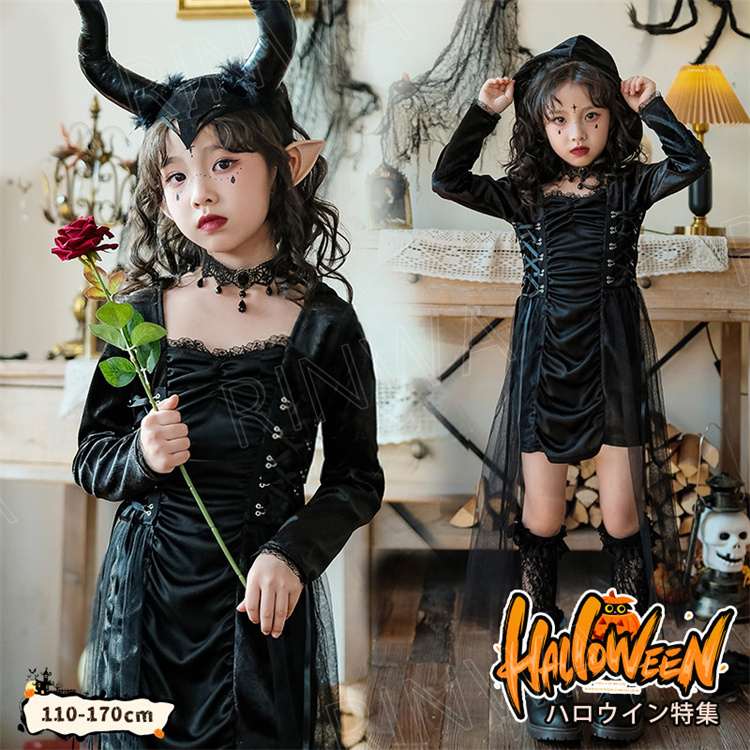 ハロウィン コスプレ 子供 ハロウィン 衣装 子供 ハロウィン 仮装 コスプレ 女の子 Halloween 演出服 お姫様 コスプレ衣装 子供 仮装 女の子 キッズ コスプレ 魔女