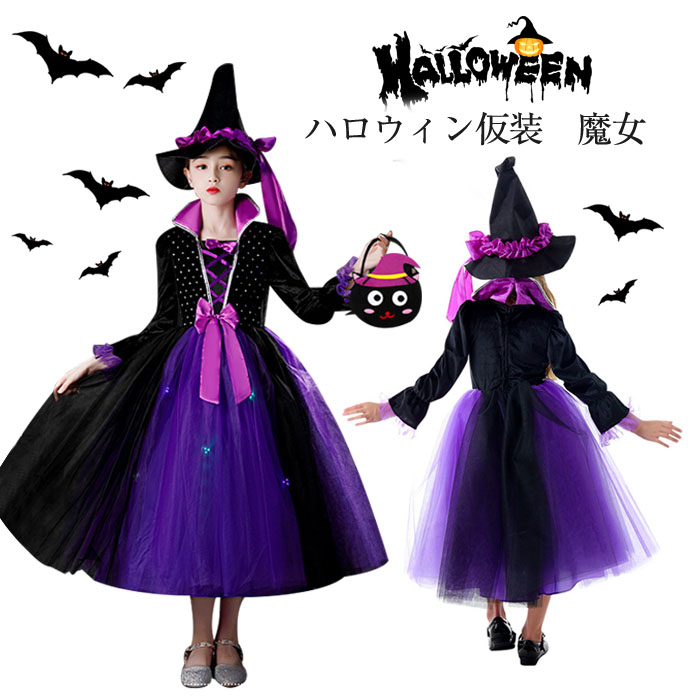 ハロウィン 子供用 魔女 魔法の杖 帽子 ワンピース 女の子 コスプレ衣装 チュチュ 巫女 悪魔 魔女 変身