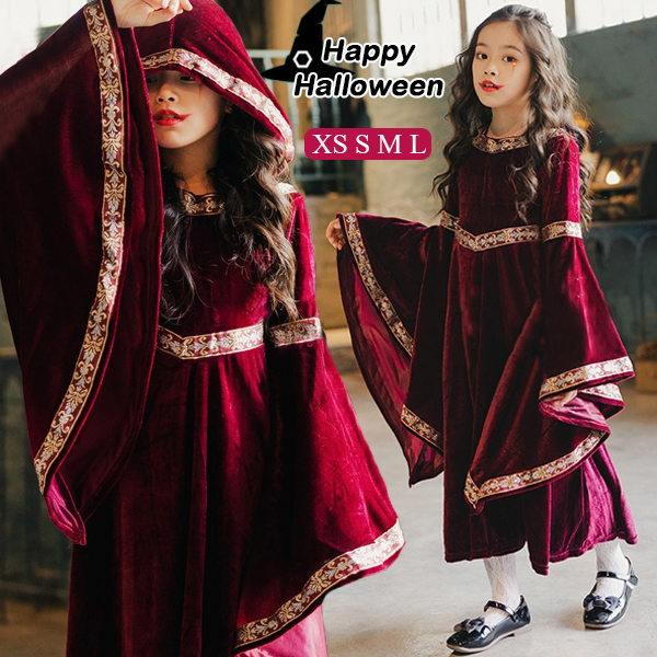 ハロウィン衣装 魔女 悪魔 女の子 吸血鬼 バンパイア 女性用 巫女 フード付きワンピース 宮廷装 ハロウイン コスチューム