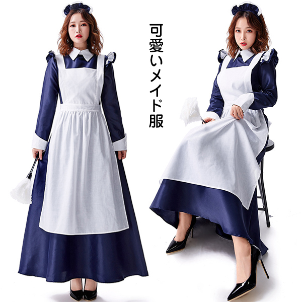 メイド服 ロング レディース 可愛い ハロウイン衣装 メイド服 ロング丈 制服 喫茶店 変装 エプロン ゴスロリ ロング ワンピース