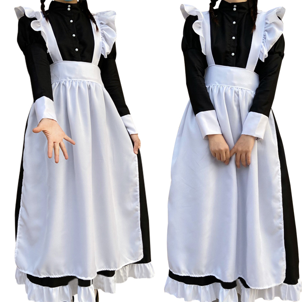 メイド服 ロング コスプレ衣装 長袖 エプロン クラシカル ロイヤルメイド レディース 大人用 イギリス風 フリル クラシカル 制服 喫茶店 変装 ゴスロリ ロング ワンピース 洋風 コスチュームロン
