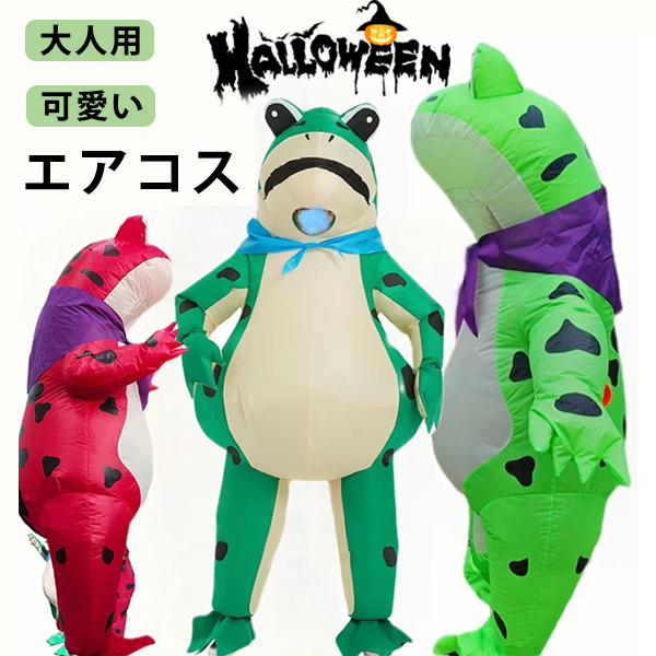 ハロウィン コスプレ 着ぐるみ 仮装 エアコス 蛙 コスチューム キャラクター エアコスプレ カエル コスプレ 大人用 空気で膨らむ 可愛い かわいい ハロウィン 衣装 文化祭 部活 コスチューム パ