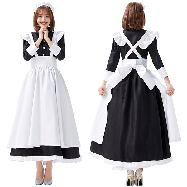 英国風クラシックスタイルのロングメイドドレス メイド服 コスプレホビー コスプレ 変装 仮装 コスチューム一式