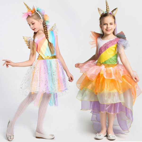 ハロウィン衣装 子供服 ユニコーン 女の子 コスチューム 3点セット ワンピース 髪飾り 翼 仮装 ハロウイン衣装 コスプレ衣装