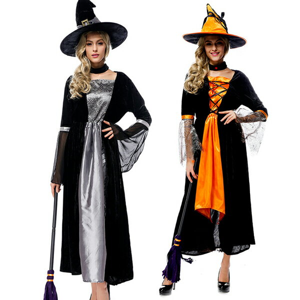 ハロウィン コスプレ 仮装 レディース セクシー 魔女 セット レディース オレンジ シルバー ハロウィンコスプレ halloween