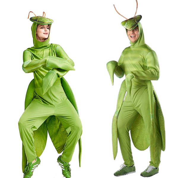 ハロウィン 衣装 カマキリ 大人 男女兼用 オールインワン グリーン 男の人 女の人 螳螂 仮装 動物 面白い 触角 コスプレ仮装