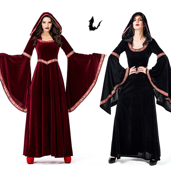 ハロウィン衣装 魔女 悪魔 レディース 吸血鬼 バンパイア 女性用 巫女 フード付きワンピース 宮廷装 ハロウイン コスチューム