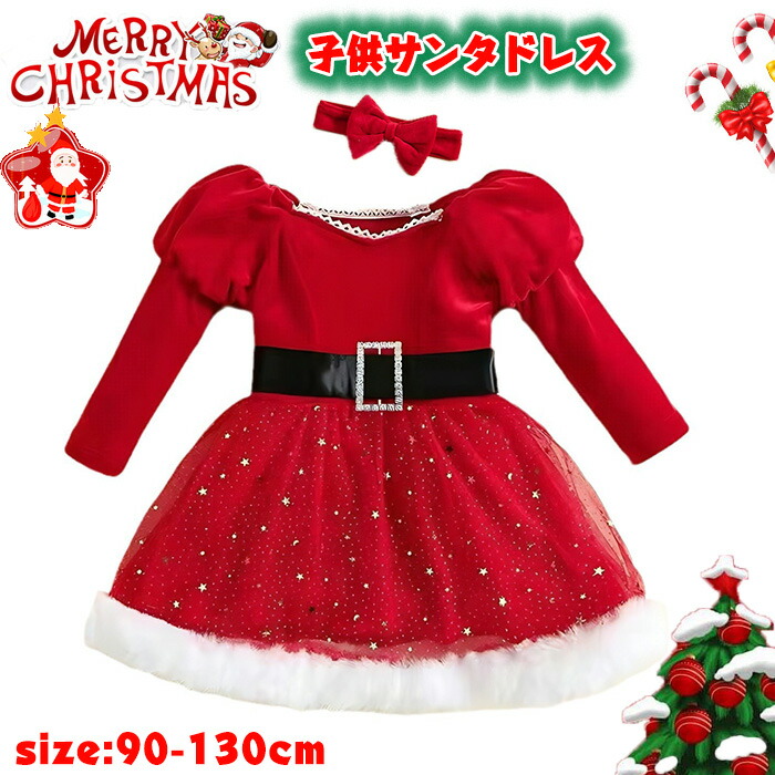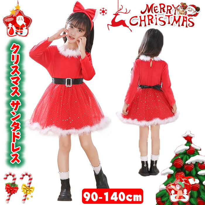 サンタ衣装 子供 クリスマス サンタドレス ヘアバンド付き 女の子 クリスマス衣装 コスチューム子供用 新年会 写真撮影 パーティー