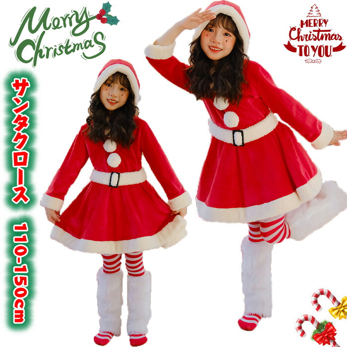 サンタ衣装 子供用 女の子 クリスマス サンタドレス ワンピースレッド 暖かパーティー用 パーティー写真撮影 新年会 記念日 サンタ仮装 90-130