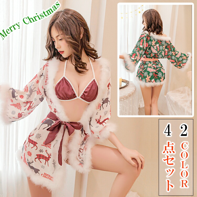 2カラー サンタランジェリー サンタクロース ランジェリー ローブ ガウン ノルディック柄 セクシーサンタ エッチな下着 レディース 大人 エロい クリスマス サンタコス 大人 セクシー