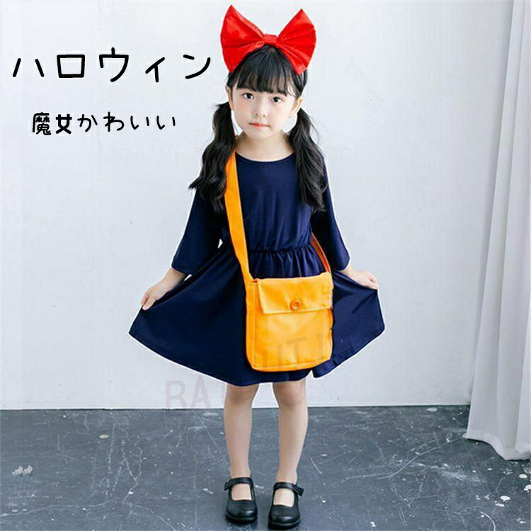 ハロウィン 衣装 魔女 キッズ 3点セット ワンピース ハロウィン 衣装 魔女 キッズ ワンピース カチューシャ バッグ 宅急便 ハロウィン衣装 子供 悪魔衣装