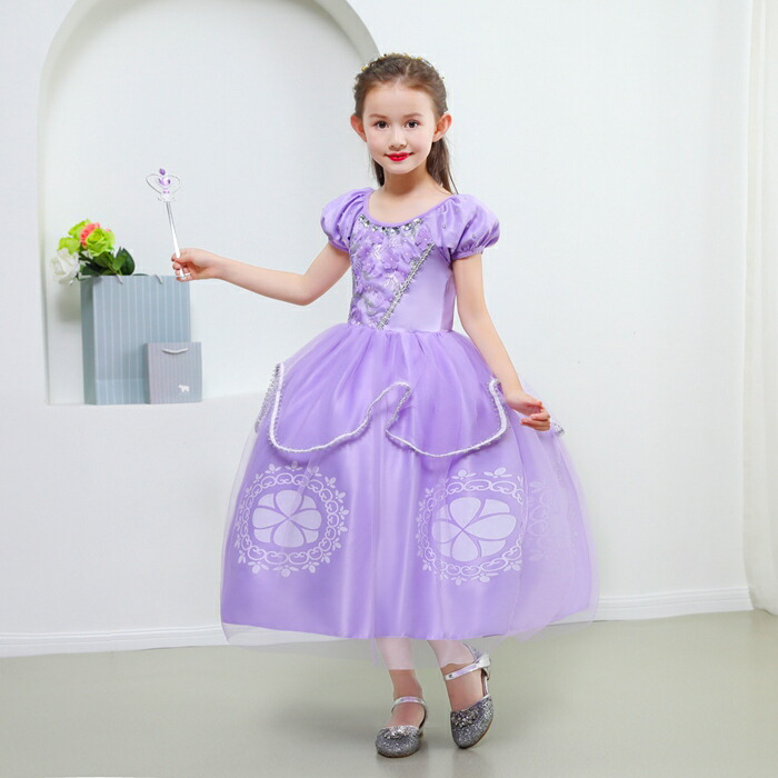 お姫様ドレス 子供ワンピース コスプレ衣装 大好きな お姫様 に変身 ブルー パープル ワンピース バースデイ 子供服 子供 ドレス