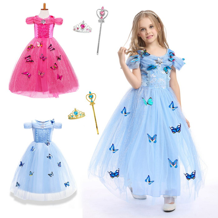 お姫様ドレス 子供ワンピース コスプレ衣装 大好きな お姫様 に変身 ブルー ピンク ワンピース バースデイ 子供服 子供 ドレス