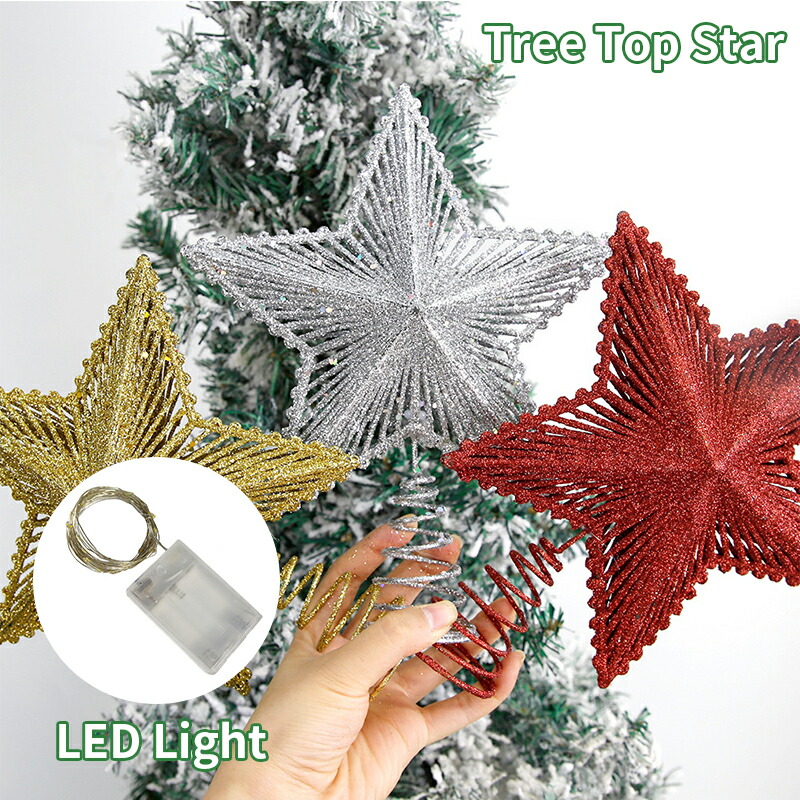 クリスマスツリー ツリートップ スター スタートップ ゴールド 飾り 北欧 おしゃれ オーナメント スター 星 豪華 オーナメント デコレーション ツリー飾り 室内 装飾 シルバー ライト付 led