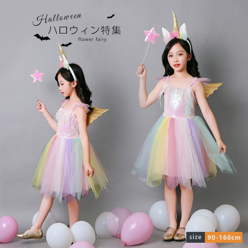ハロウイン衣装 天使 コスプレアイテム カチューシャ+羽+ワンピース3点 ハロウィーン コスプレ お遊戯会 衣装 子供用 ハロウインクロース
