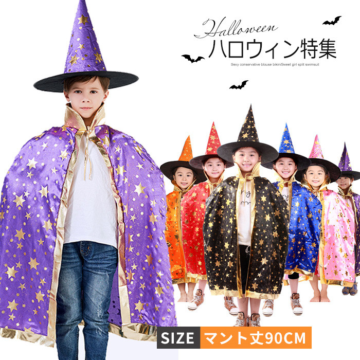 ハロウィン衣装 マント 魔法帽 魔術師 キッズ 小魔女 星柄 2点セット 女の子 男の子 仮装 変装 コスプレ ハロウィン衣装 キッズ 男の子 女の子 ステージ 100-160適用