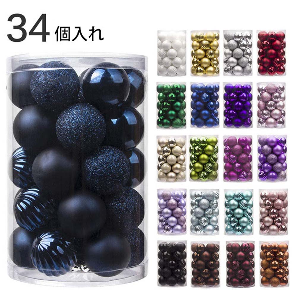 ディスプレイ おしゃれ ボール直径6cm 装飾 デコレーション クリスマス グリーン オーナメントメッキボール34個セット ツリー ピンク レッド スカイブルー