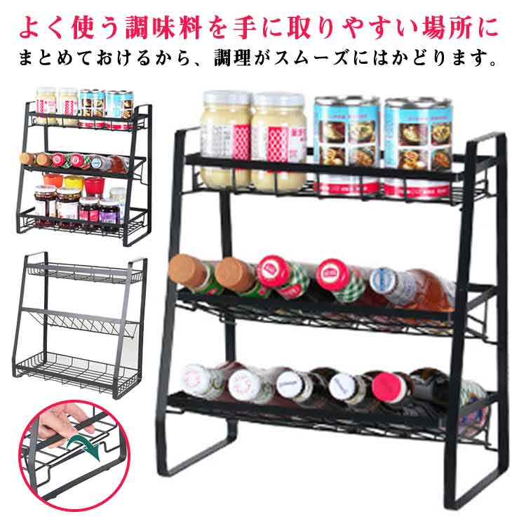 キッチン収納 3段 スパイスラック 調味料ラック 収納棚 収納ラック 大容量 台所用品 調理台 収納 キッチンスタンド スパイスラック