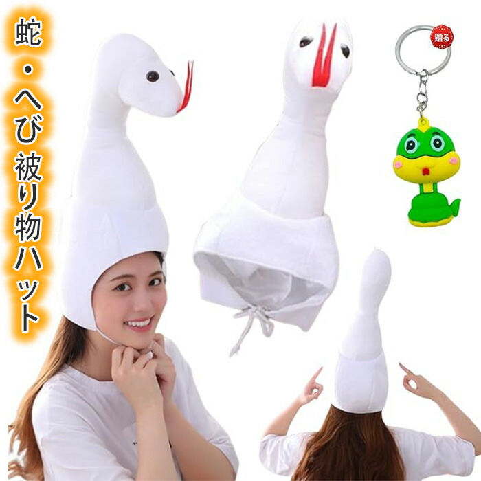 蛇 被り物 ヘビ かぶりもの へび キャップ 着ぐるみ アニマルハット 2025年 干支 巳年ハロウィン クリスマス コスプレ防寒 新年 イベント ホワイト 蛇の帽子キーホルダー付き ホワイト