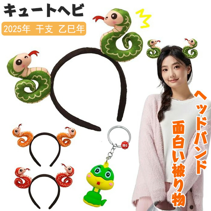 蛇 かぶりもの ヘビ カチューシャ へび ぬいぐるみ ヘアバンド 髪飾り 巳年 被り物 2025年 干支 乙巳年 仮装 クリスマス仮装 ヘアアクセサリー 写真撮影