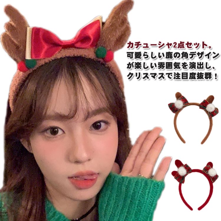 2点セット ふわふわ クリスマス カチューシャ 髪飾り オシャレ 可愛い かわいい クリスマス子供 大人 インスタ ヘアアクセ アクセサリー 角 鹿