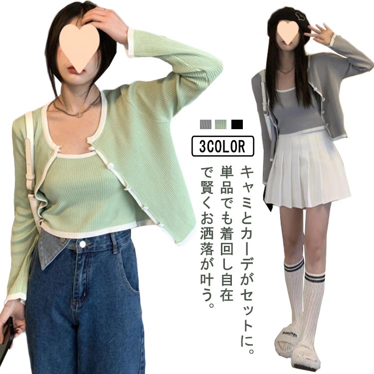 セット キャミソール カーディガン ニット 40代 20代レディースファッション トップス アンサンブル