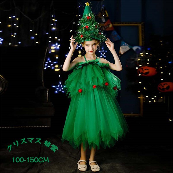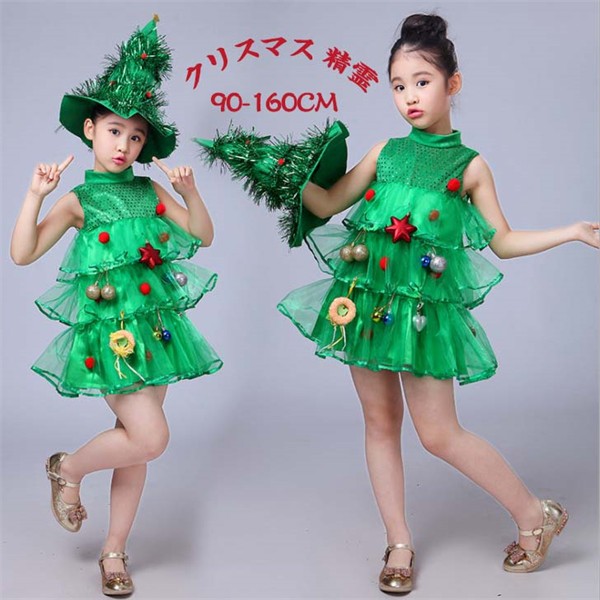 クリスマス サンタ 精霊衣装 子供コスプレ イベント パーティー クリスマスパーティー キッズ 女の子 可愛い コスチューム コスプレサンタ 女児 ワンピース グリーン aa075z7z7m5