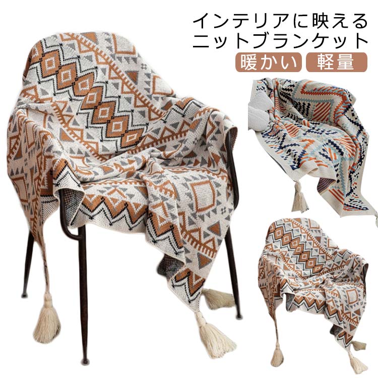 ひざ掛け 大人 可愛い プレゼント シングル 大判 タッセル付 インテリア 赤ちゃん おしゃれ ブランケット 肌寒い 冷房 洗える 暖かい 洗濯 ニットブランケット 軽量 エスニック柄 キャンプ 子供