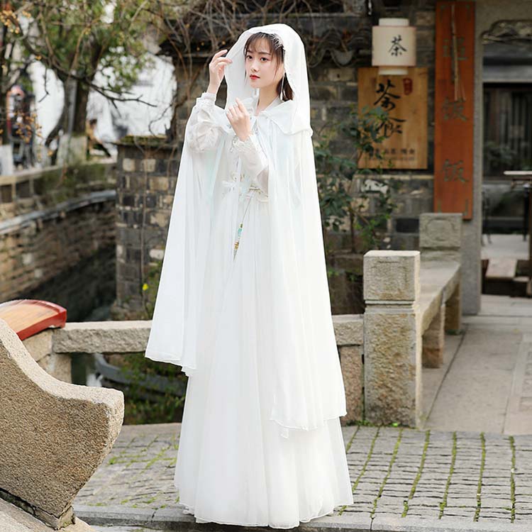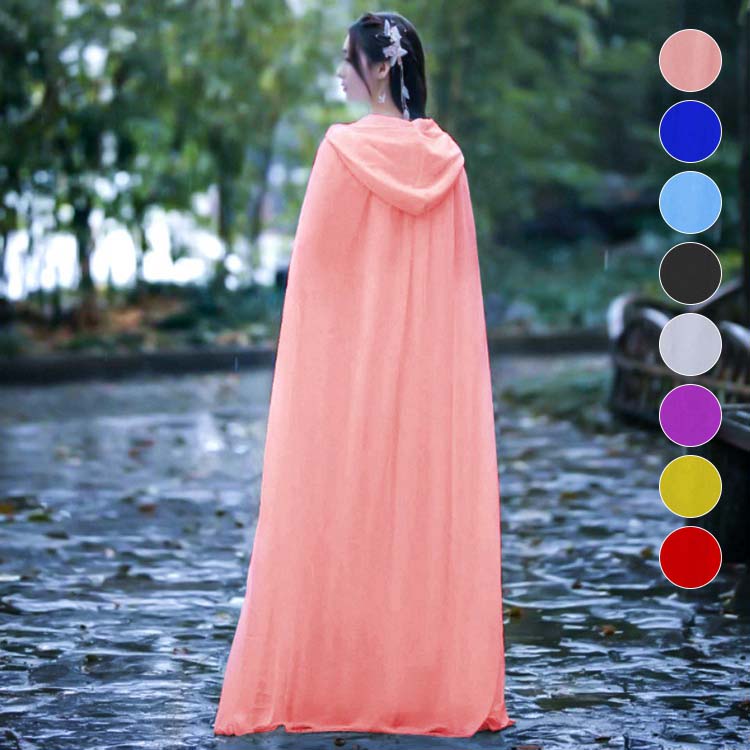 マント 漢服 ロング丈 チャイナドレス レディース オーバコート 中華服 チャイナ服 華流 コスプレ衣装 お姫様 仮装 変装 シフォン ロング ケープ シンプル フード有り 無地 肩掛け