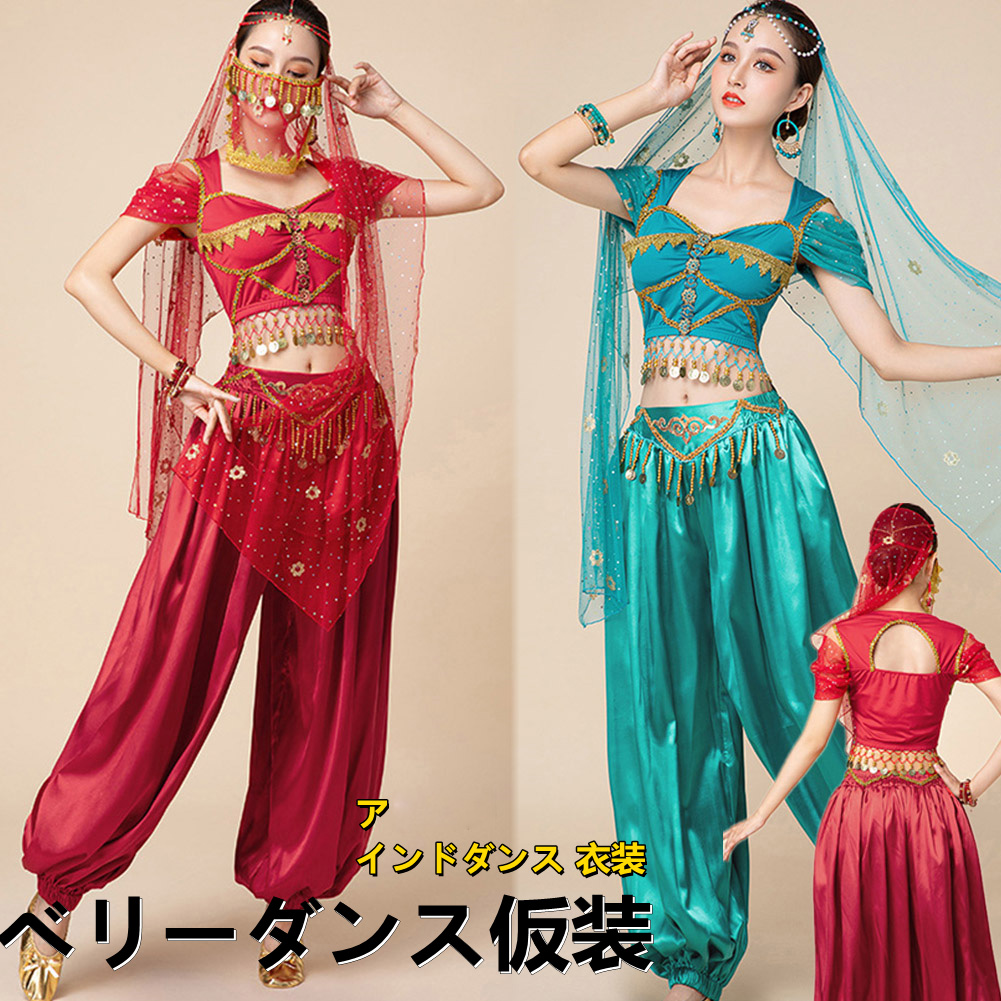 レディース ベリーダンスセット衣装イベント 華やか ベリーダンス衣装女性 レッスン着練習着 アラビアン 女王 民族衣装 ハロウィン コスプレ衣装 コスチューム