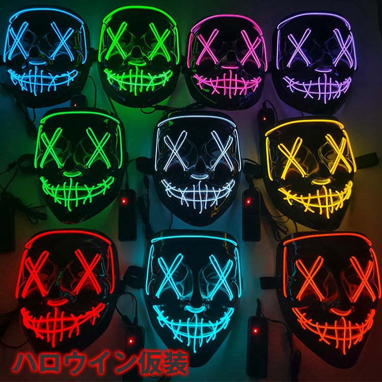 ハロウイン 仮装 LED マスク 仮面 LED 光る ホラー 男女兼用 10colorホラーマスク 仮装 クリスマス イベント パーティー 舞踏会 おばけ 文化祭 コスプレ小物