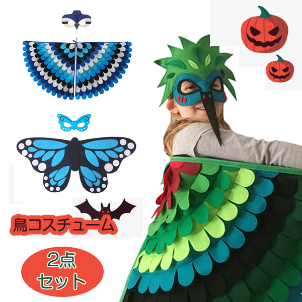 ハロウイン コスプレ つばさ 鳥 チョウ マスク キッズ コスチューム 仮面 イベントで目立つ 2点セット 仮面 女の子