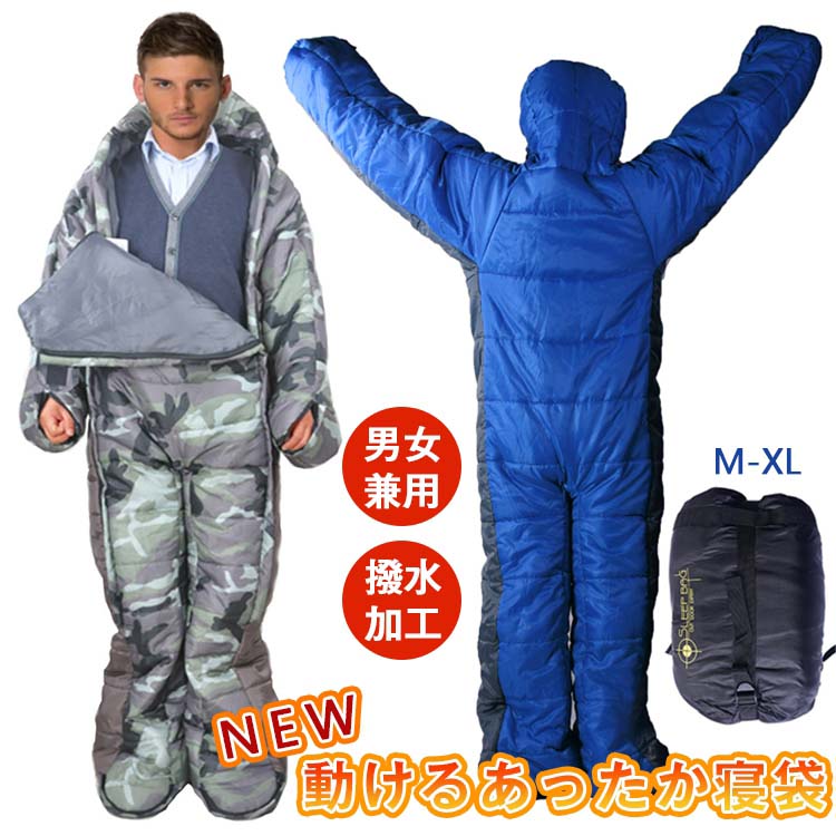 人型寝袋 お昼寝 大人用寝袋 寝袋 寝冷え防止 シュラフ キャンプ 歩ける寝袋 雑貨 軽量 長袖 冬 耐寒 保温 スリーパー 厚手 車中泊 ポリエステル 防災関連グッズ 暖房節約 中綿