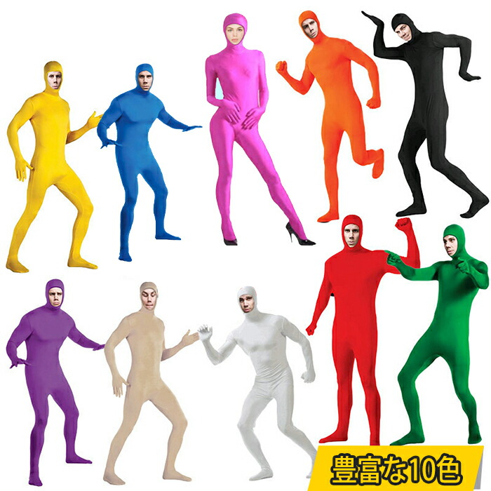 全身タイツ コスプレ10色 レディース メンズ キッズ 子供 ハロウィン 衣装 仮装 顔出し 肌色 黒 緑 青 オレンジ ブロク インナー ストレッチ 余興 宴会 新年会 演しもの パーティー