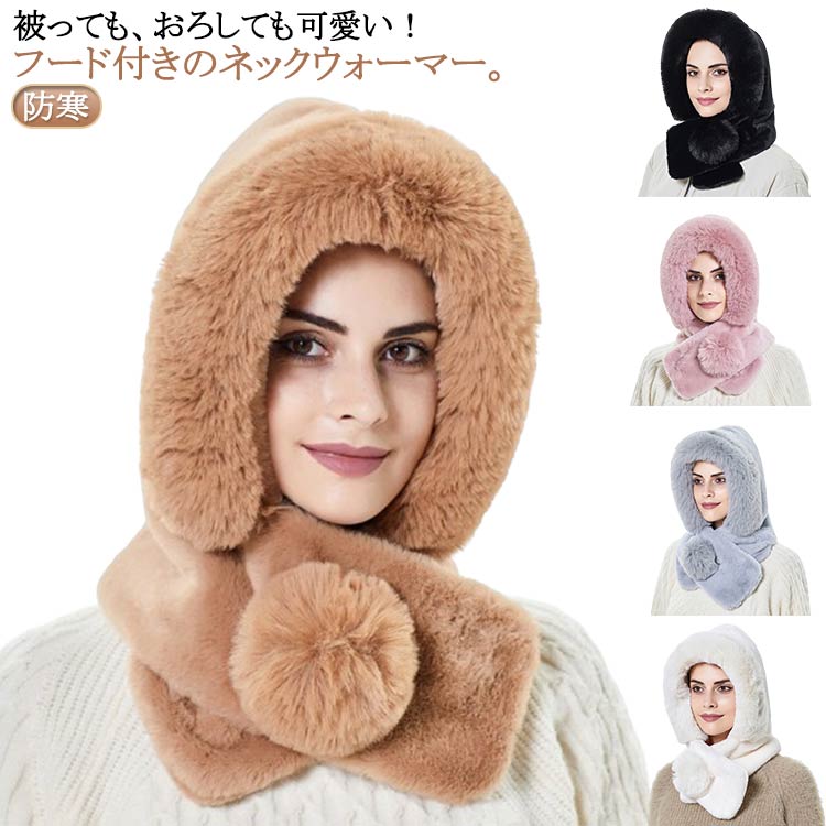 ネックウォーマー 帽子 バラクラバ フェイクファー ネックウォーマー レディース メンズ マフラー 帽子 ぼうし フード 防寒対策 暖かい あったかグッズ コーデ 耳まで暖か