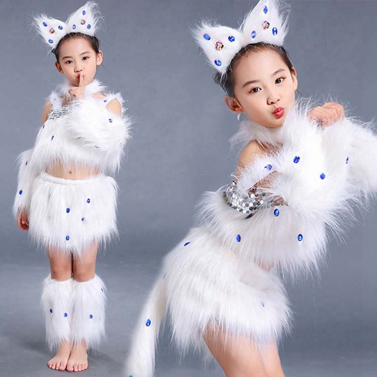 ダンス衣装 猫ちゃん コスチューム 可愛い 髪飾り 変装 ハロウィン コスプレ衣装 着ぐるみ 女の子 舞台服 ステージ衣装 子供 動物 仮装 トップス 7点セット 袖カバー スカート
