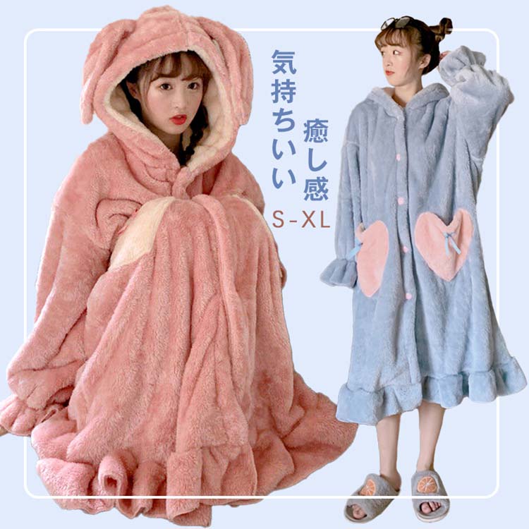 もこもこ ルームウェア モコモコ 動物 カーディガン もこもこ パジャマ メンズ レディース 冬 暖かい 長袖 大きいサイズ ワンピース 150 160 冬用 フリルデザイン 兎 うさぎ うさみみ