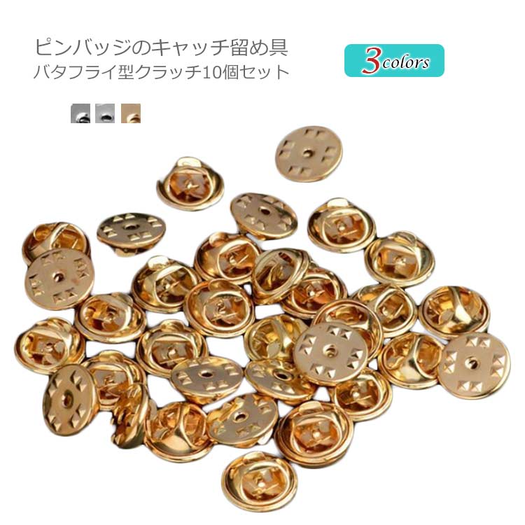 ピンバッジ留め具のみ 10個セット 蝶ピンバッジ 蝶タック バタフライ型キャッチ 金具 留め具 ゴールド シルバー ブラック ブローチ土台 セッティング台座 ハンドメイド 手芸 手作り おしゃれ