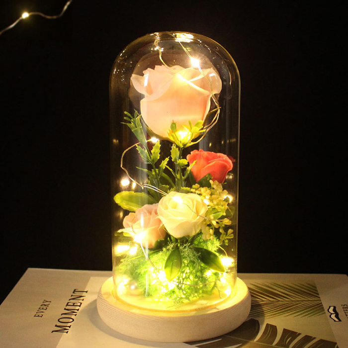フラワーギフト 花 北欧 ローズ キラキラ ライト 電池式ライト フラワー 枯れない花インテリア 寝具 収納 インテリア小物 置物 その他