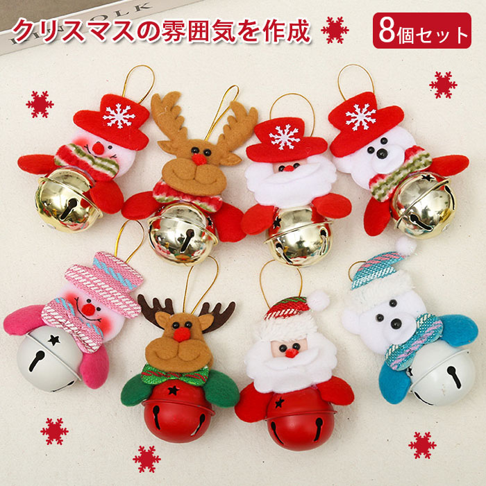 クリスマスの雰囲気を作成できるオーナメント 8点セット 鈴 雪だるま トナカイ クマインテリア 寝具 収納 インテリア小物 置物 その他