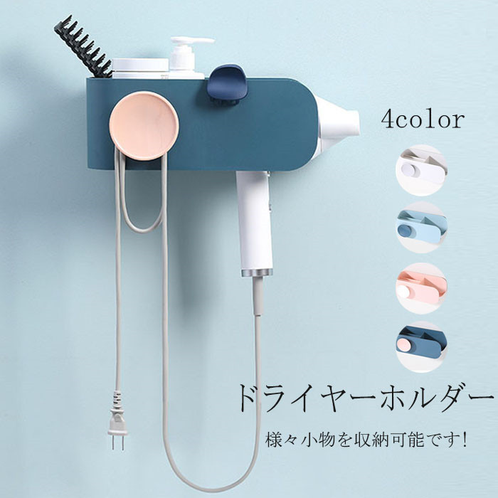 ドライヤー収納 小物収納 4色ドライヤーホルダー 壁掛け式 洗面台収納 収納ラック ドライヤー置き 穴あけ不要 水切り お風呂 収納 バス用品 バスルーム