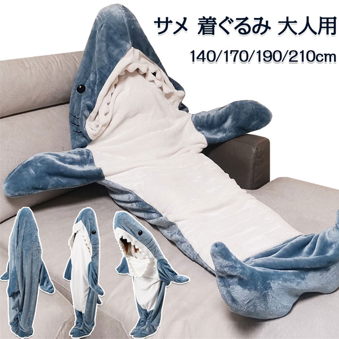 かわいい サメ 柔らかい お誕生日 冷房対策 パジャマ アニマルブランケット 大人用 ぬいぐるみ おしゃれ メンズ 暖かい 寝袋 着る毛布 サメ ギフト プレゼント