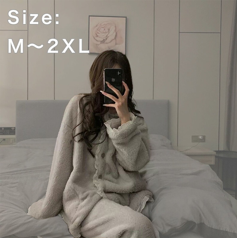 女性パジャマ ルームウェア もこもこ上下セット 厚手 レディース 着る毛布 かわいい 女子ガウン 前開き 柔らか ふわふわ 裏起毛 冬部屋着 無地 シンプル 防寒 カジュアル パーティー フード あっ